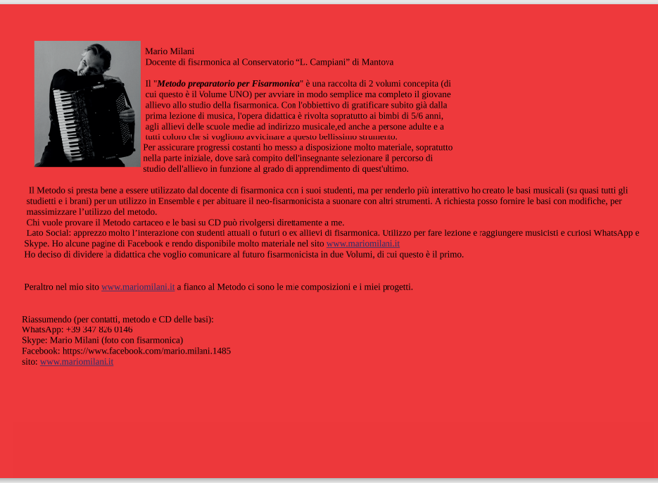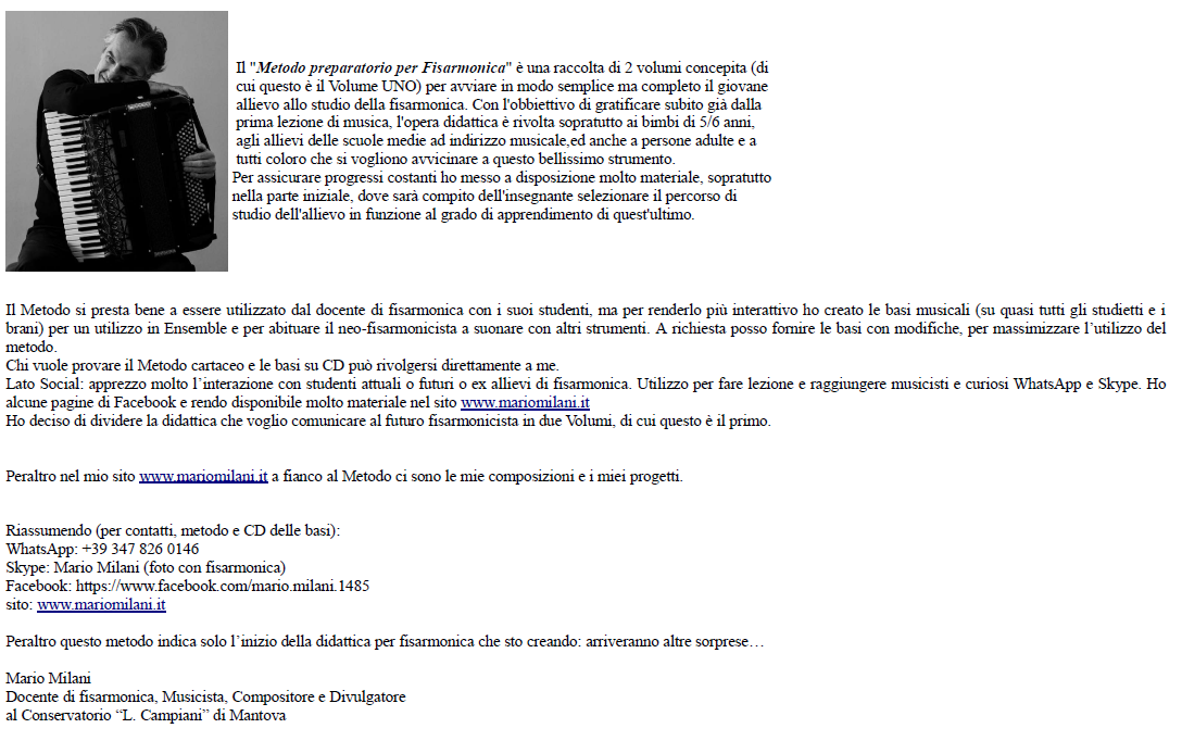Docente di Fisarmonica presso il Conservatorio "L. Campiani" di Mantova. Compositore e Musicista.